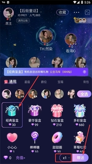 2、点击想要赠送的礼物和数量,点击赠送