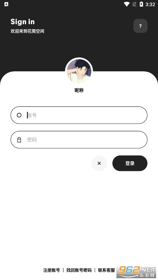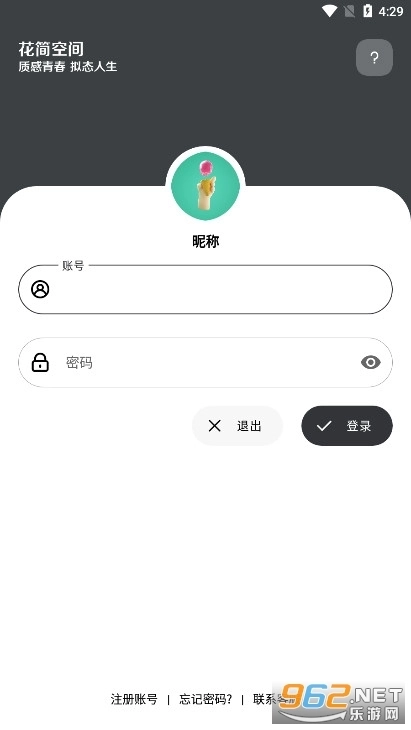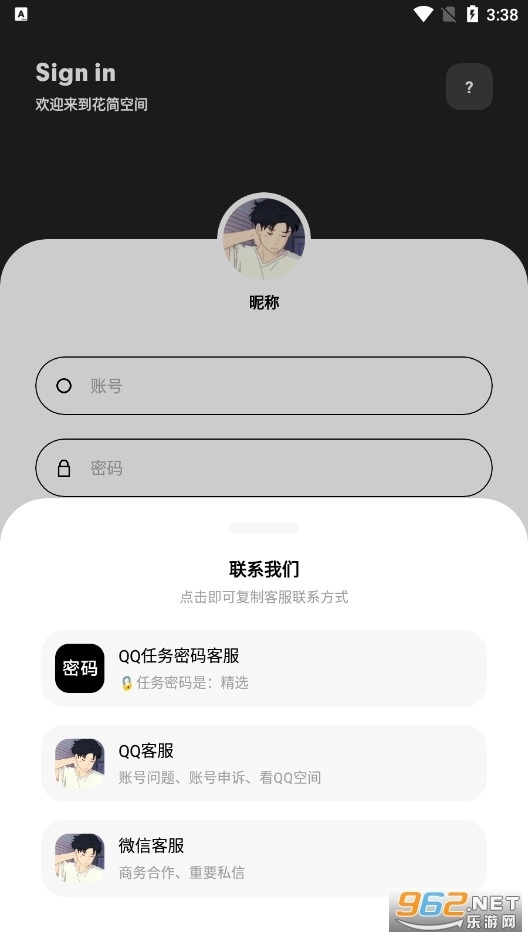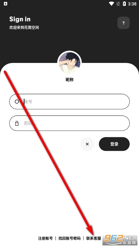 2、在花简空间最新版下载注册登录页面,选择右下方的“联系客服”。