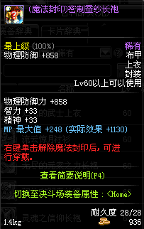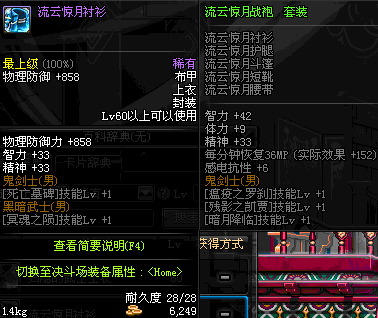 | 50 | 天蝉护魂长袍 | *Lv50~56普通地下城怪物掉落 *在加百利的神秘商店购买 |