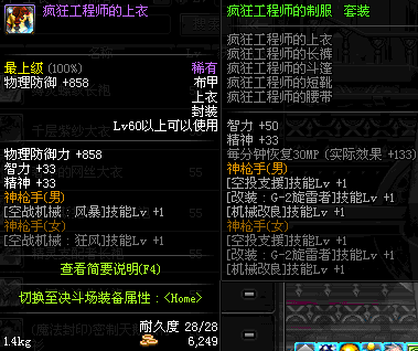 | 40 | 幻影落凰长袍 | *Lv39~46普通地下城怪物掉落 *在加百利的神秘商店购买 |