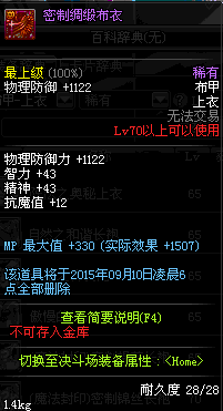 | 15 | 圣物 :大地女神的羊毛长袍 | *Lv13~21普通地下城怪物掉落 |