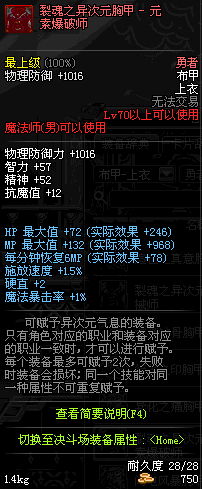 | 70 | 裂魂之异次元胸甲 - 元素爆破师 | |||