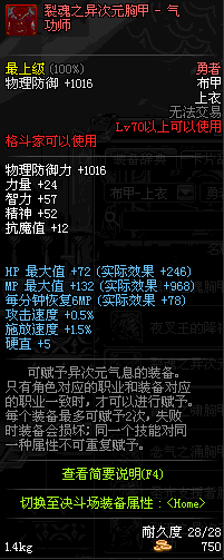 | 70 | 裂魂之异次元胸甲 - 气功师 | |||