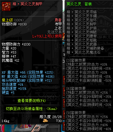 | 70 | 灵魔长袍 | *骷髅骑士 掉落(瘟疫之源) *在NPC西岚的物品店购买(银色陨石×284) |
