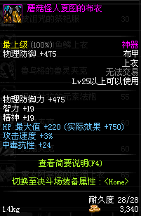 | 25 | 蘑菇怪人夏图的布衣 | *蘑菇怪人夏图 掉落(蘑菇庄园) *在NPC阿尔伯特·伯恩斯坦的物品店购买(阿拉德陨石×37) |
