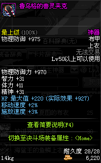 | 50 | 鲁乌格的兽灵夹克 | *野兽师鲁乌格 掉落(黑色雪山) *在NPC敏泰的物品店购买(阿拉德陨石×174) |