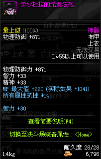 | 55 | 伊莎杜拉的元素法袍 | *伊莎杜拉 掉落(无尽的噩梦) *在NPC敏泰的物品店购买(阿拉德陨石×202) |