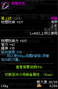 | 60 | 紫隐夹克 | *西克特.帕菲斯 掉落(夜间袭击战) **在NPC泽丁·施奈德的物品店购买(黑色陨石×229) |