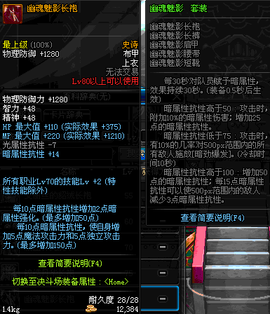 | 80 | 幽魂魅影长袍 | *Lv79~86深渊地下城怪物掉落 | 幽魂魅影 套装 | |