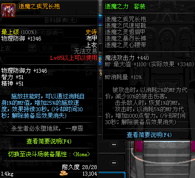 | 85 | 逝魔之疾咒长袍 | *Lv84~91深渊地下城怪物掉落 | 逝魔之力 套装 | |