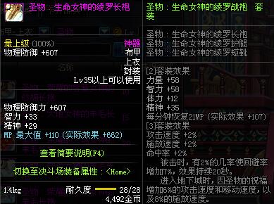 | 35 | 圣物 :生命女神的绫罗长袍 | *Lv34~41普通地下城怪物掉落 |