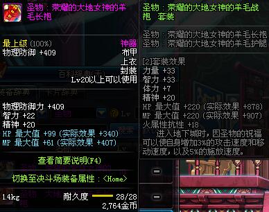 | 20 | 圣物 :荣耀的大地女神的羊毛长袍 | *Lv19~26普通地下城怪物掉落 | ||