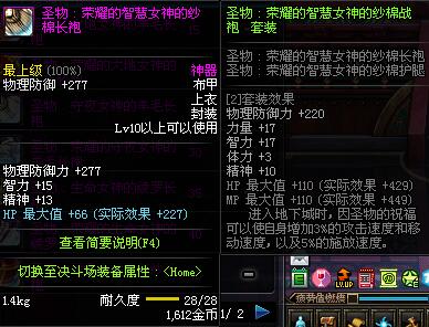 | 10 | 圣物 :荣耀的智慧女神的纱棉长袍 | *Lv8~14普通地下城怪物掉落 |