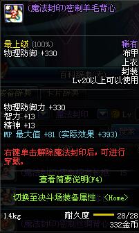 | 20 | (魔法封印)密制羊毛背心 | *Lv19~26普通地下城怪物掉落 *完成[烦人的蚂蚁]任务 *使用Lv19~26怪物掉落的设计图进行制作 |