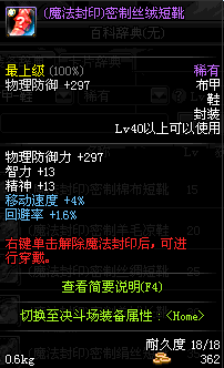 | 15 | (魔法封印)密制棉布短靴 | *Lv13~21普通地下城怪物掉落 *完成[[魔法封印防具]天才武道家的试炼(3/3)]任务 *使用Lv13~21怪物掉落的设计图进行制作 |