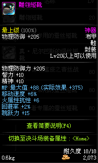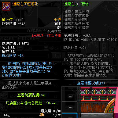 | 85 | 逝魔之风速短靴 | *Lv84~91深渊地下城怪物掉落 | 逝魔之力 套装 | |