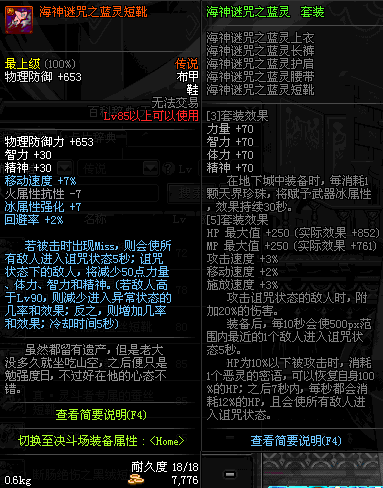 | 85 | 海神谜咒之蓝灵短靴 | *昨日之巴斯顿 掉落 (在远古地下城里出没。) *从NPC鲁特的物品店出售的[海神谜咒防具礼盒]中获得 *船长鲁特 出售 (深海诅咒 : 解咒法×600) |