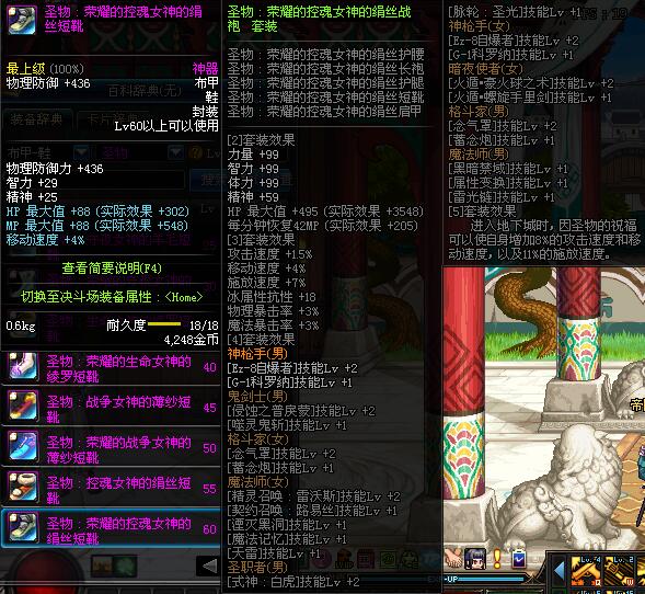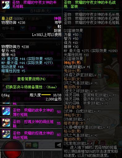 | 60 | 圣物 :荣耀的控魂女神的绢丝短靴 | *Lv58~66普通地下城怪物掉落 |