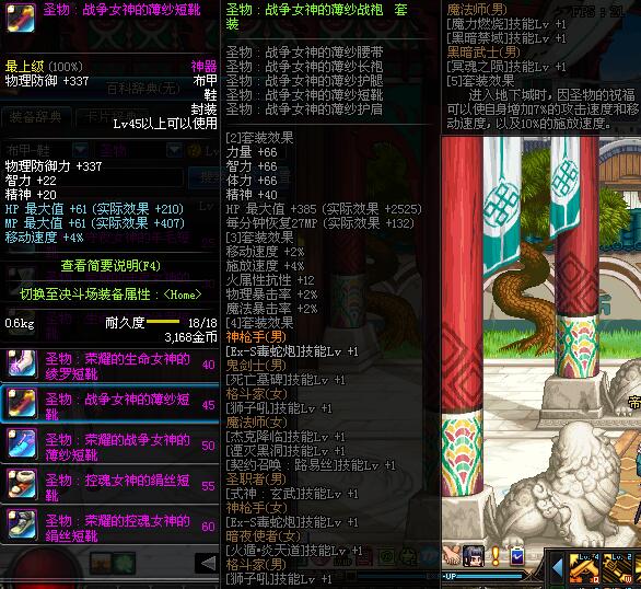 | 45 | 圣物 :战争女神的薄纱短靴 | *Lv45~51普通地下城怪物掉落 |