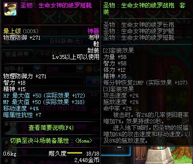 | 35 | 圣物 :生命女神的绫罗短靴 | *Lv34~41普通地下城怪物掉落 |