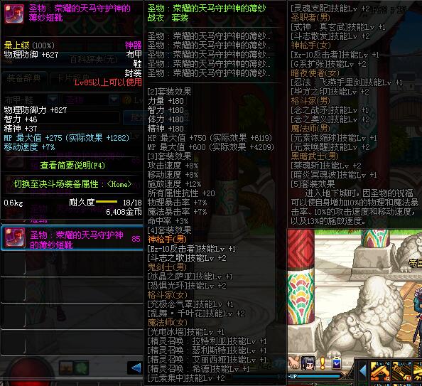 | 85 | 圣物 :荣耀的天马守护神的薄纱短靴 | *Lv85~91普通地下城怪物掉落 | ||
