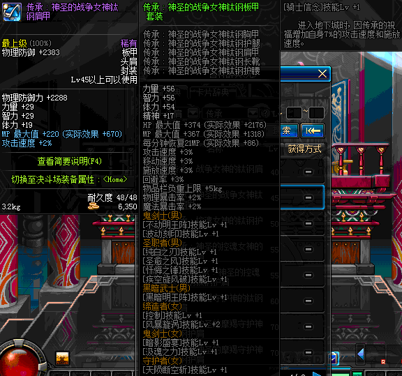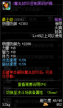 | 45 | 圣物 :战争女神的钛钢护肩 | *Lv45~51普通地下城怪物掉落 |