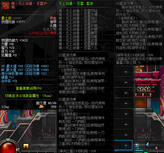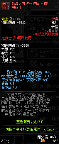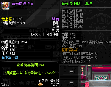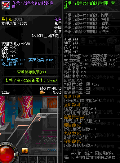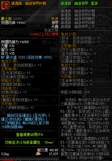 | 辅助装备: | 全职业 鬼剑士 女鬼剑 女格斗 男格斗 神枪手 女枪手 魔法师 男法师 圣职者 暗夜使者 守护者 |