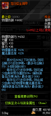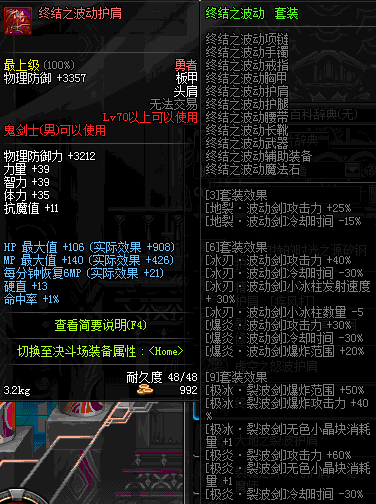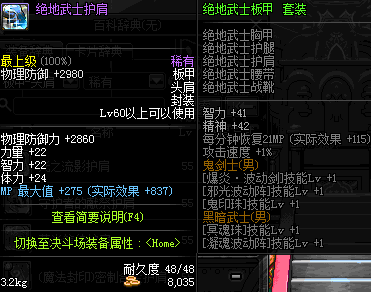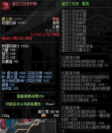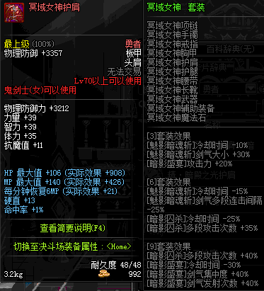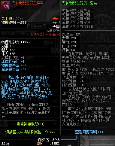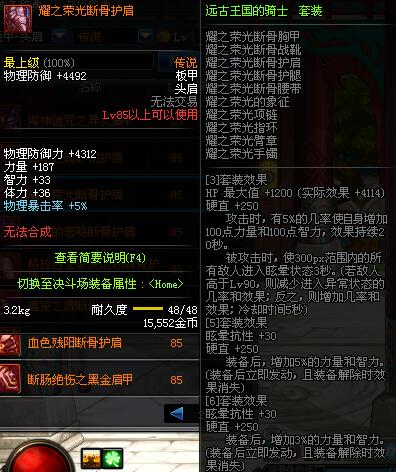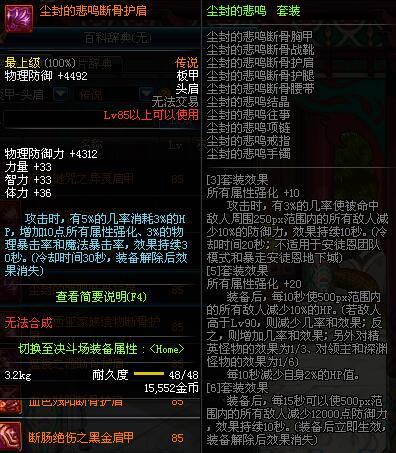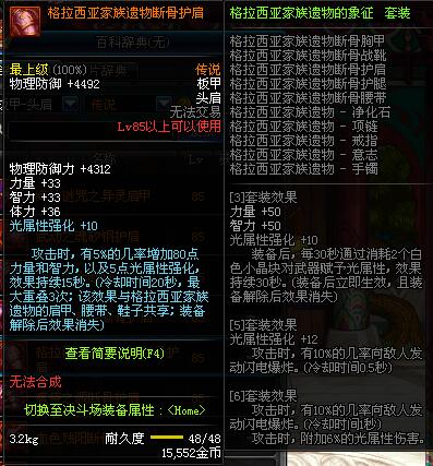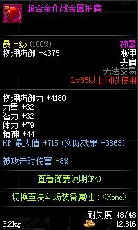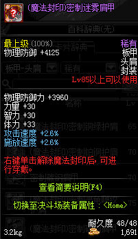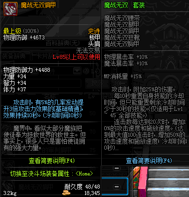 | 85 | 魔战无双肩甲 | *Lv84~91深渊地下城怪物掉落 | 魔战无双 套装 | |