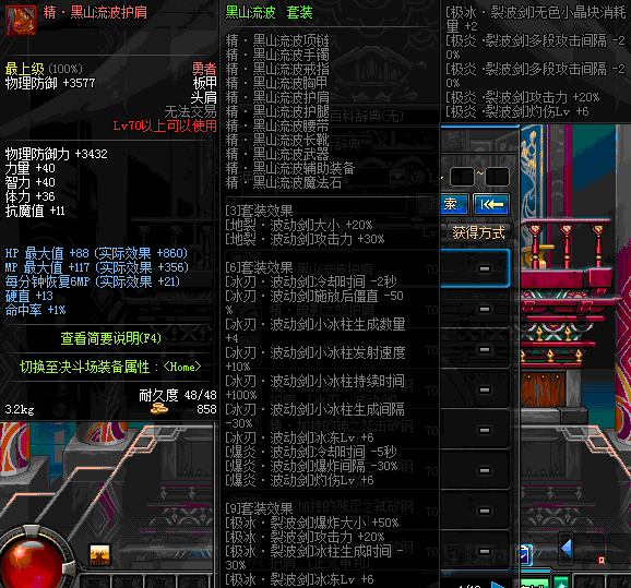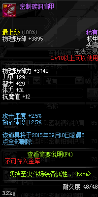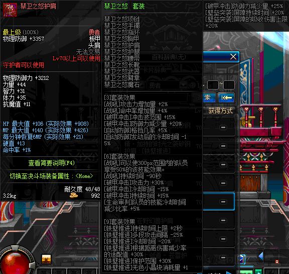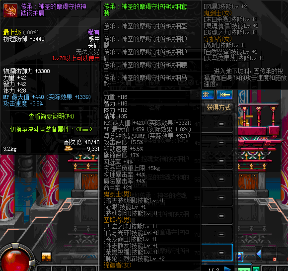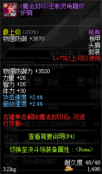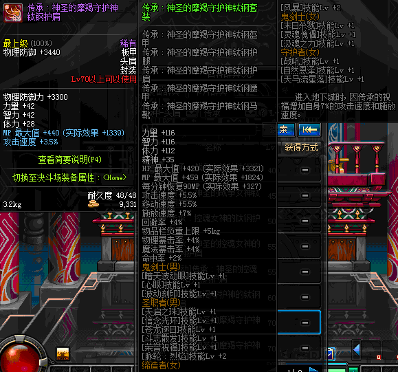 | 70 | 圣物 :荣耀的摩羯守护神的钛钢护肩 | *Lv70~76普通地下城怪物掉落 |