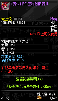 | 20 | (魔法封印)密制硬钢护肩 | *Lv19~26普通地下城怪物掉落 *完成[摧毁蚁穴]任务 *使用Lv19~26怪物掉落的设计图进行制作 |