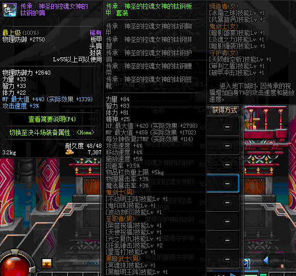 | 60 | 圣物 :荣耀的控魂女神的钛钢护肩 | *Lv58~66普通地下城怪物掉落 |