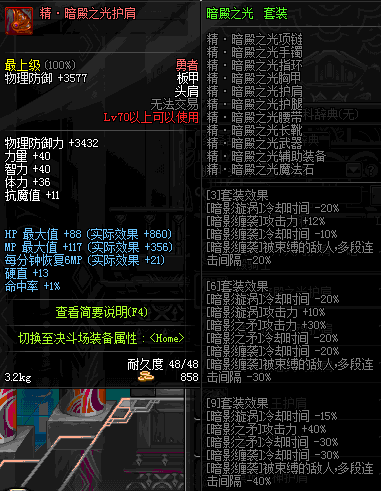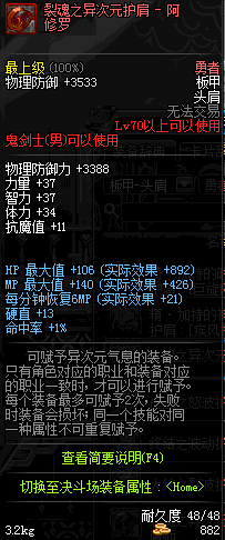 | 70 | 裂魂之异次元护肩 - 暗殿骑士 | |||
