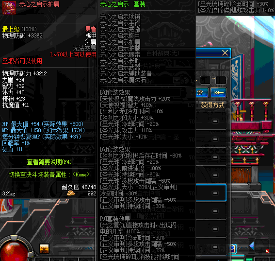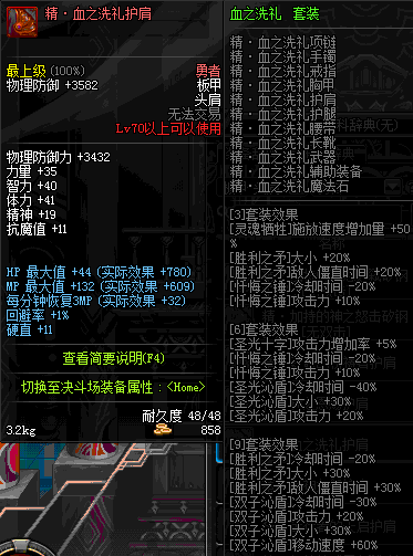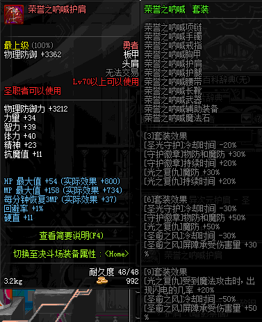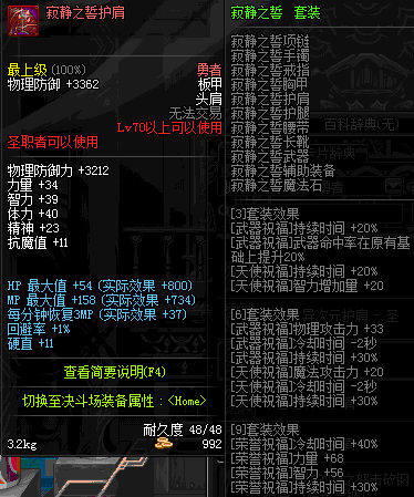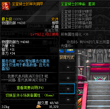 | 75 | 圣堂骑士的审判肩甲 | *Lv74~81深渊地下城怪物掉落 | 圣堂骑士的神谕 套装 | |