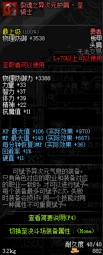 | 70 | 裂魂之异次元护肩 - 圣骑士 | |||