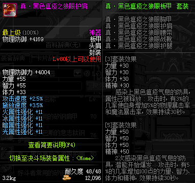 | 80 | 真 · 褐色瘟疫之狼眼护肩 | *设计图(70LV以上普通地下城 登场的NPC加百利 出售) *褐色瘟疫之狼眼护肩 → 用远古神器装备进化书升级(NPC船长鲁特 出售) |