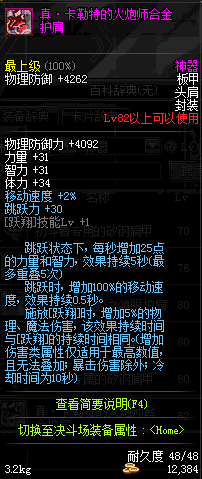 | 82 | 真 · 卡勒特的火炮师合金护肩 | *设计图(70LV以上普通地下城 登场的NPC加百利 出售) *卡勒特的火炮师合金护肩 → 用远古神器装备进化书升级(NPC船长鲁特 出售) |