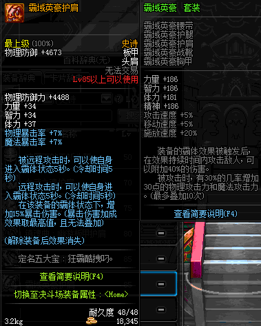 | 85 | 霸域英豪护肩 | *Lv84~91深渊地下城怪物掉落 | 霸域英豪 套装 | |