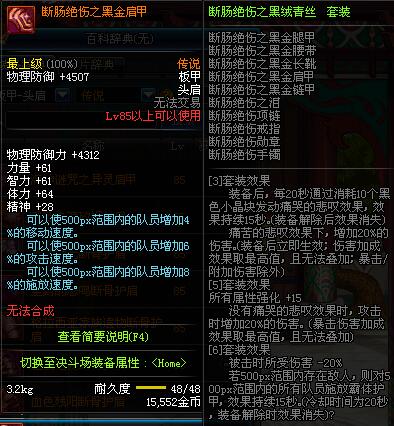 | 85 | 断肠绝伤之黑金肩甲 | *昨日之巴斯顿 掉落 (在远古地下城里出没。) *从NPC鲁特的物品店出售的[断肠绝伤防具礼盒]中获得 |