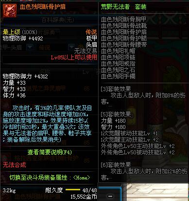 | 85 | 血色残阳断骨护肩 | *昨日之巴斯顿 掉落 (在远古地下城里出没。) *从NPC鲁特的物品店出售的[血色残阳防具礼盒]中获得 |