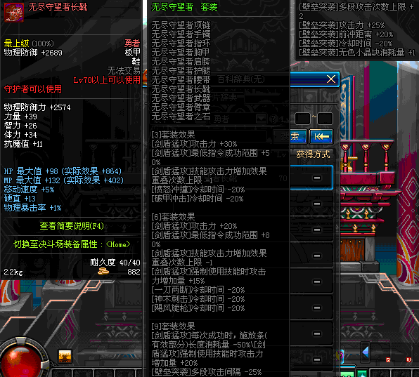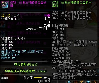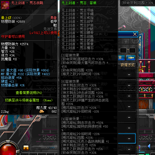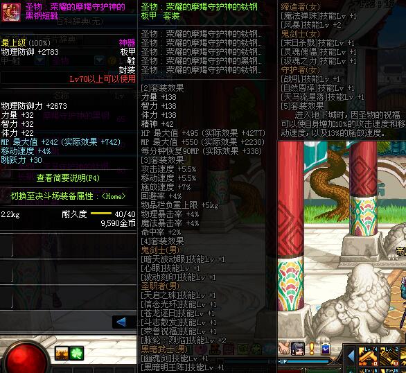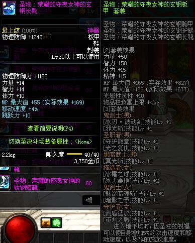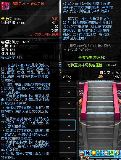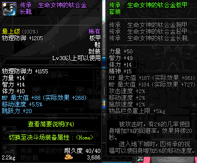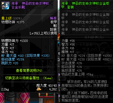 | 40 | 圣物 :荣耀的生命女神的钛合金长靴 | *Lv39~46普通地下城怪物掉落 |