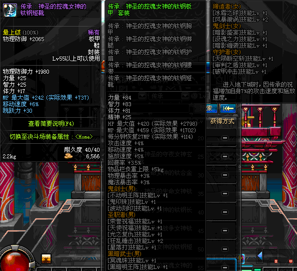 | 60 | 圣物 :荣耀的控魂女神的钛钢短靴 | *Lv58~66普通地下城怪物掉落 |