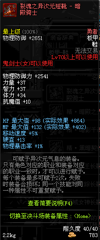| 70 | 裂魂之异次元短靴 - 暗殿骑士 | |||