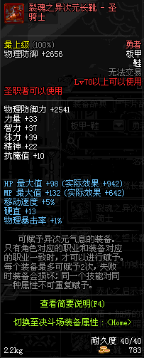 | 70 | 裂魂之异次元长靴 - 圣骑士 | |||