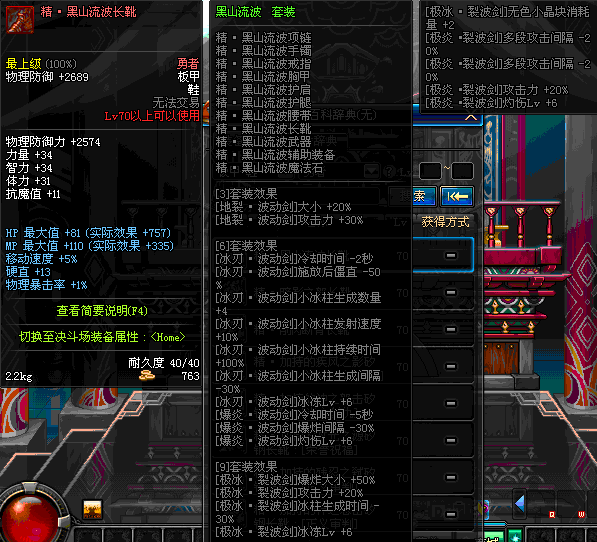 | 70 | 圣物 :荣耀的摩羯守护神的钛钢短靴 | *Lv70~76普通地下城怪物掉落 |