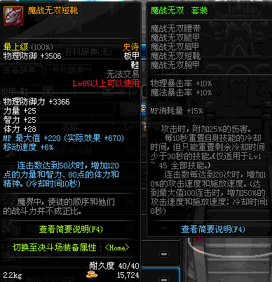 | 85 | 魔战无双短靴 | *Lv84~91深渊地下城怪物掉落 | 魔战无双 套装 | |