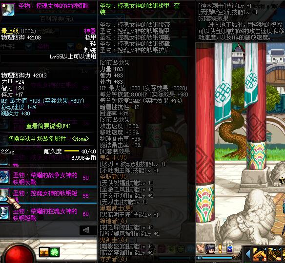 | 55 | 圣物 :控魂女神的钛钢短靴 | *Lv53~61普通地下城怪物掉落 |