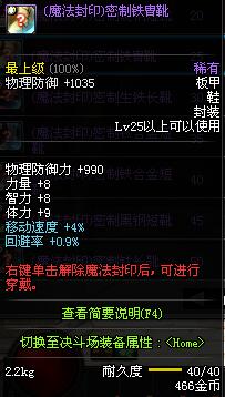 | 25 | (魔法封印)密制铁胄鞋 | *Lv24~31普通地下城怪物掉落 *在NPC阿尔伯特·伯恩斯坦的物品店购买 *完成[斯卡迪女王的指点]任务 *使用Lv24~31怪物掉落的设计图进行制作 |