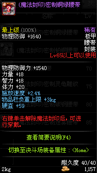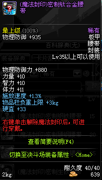 | 55 | (魔法封印)密制合金腰带 | *Lv53~61普通地下城怪物掉落 *完成[消灭邪龙]任务 *使用Lv53~61怪物掉落的设计图进行制作 |