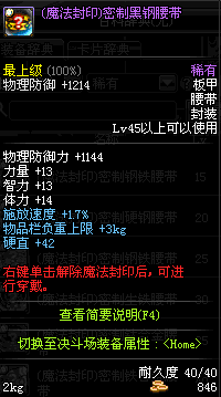 | 45 | 圣物 :战争女神的钛钢护腰 | *Lv45~51普通地下城怪物掉落 |