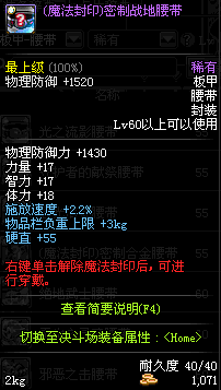 | 60 | (魔法封印)密制战地腰带 | *Lv58~66普通地下城怪物掉落 *完成[意料之中]任务 *使用Lv58~66怪物掉落的设计图进行制作 |